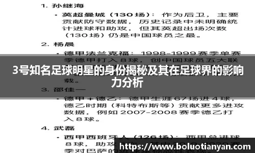 五月三号是足球界一个特殊的日子,这一天诞生了多位杰出的足球明星,他们以卓越的才华和不懈的努力,在绿茵场上书写下辉煌的成就与传奇故事。这篇文章将围绕几位在这一天出生的足球运动员展开,首先介绍他们各自的职业生涯及主要成就,其次探讨他们在比赛中的突出表现和对球队的重要贡献,接着讨论他们个人生活中的一些传奇经历,以及最后分析他们如何影响了后辈球员的发展。通过这些精彩纷呈的内容,我们不仅能了解这些球星的人生...